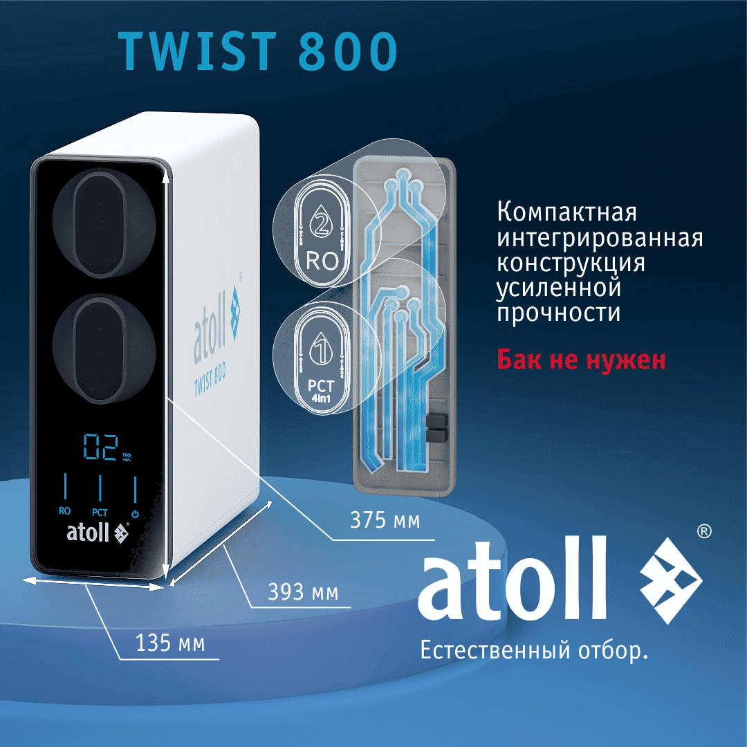 Прямоточная система обратного осмоса atoll TWIST A-5800p - теперь доступная в комплектации "без крана"!